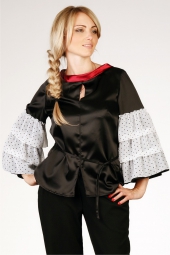 Описание: Блузка из атласа и шифона. Длина по спинке 62 см. На модели с брюками R00953