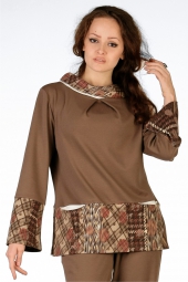 Описание: Блузон свободного покроя из однотонного джерси и джерси с принтом. Длина по спинке 61см. На модели с брюками R00987