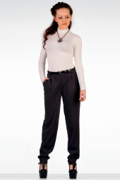 Описание: Брюки свободного покроя из мягкого уютного джерси, чуть ниже талии, с карманами, спереди - застежка на потайную молнию. Длина по боковому шву - 102 см