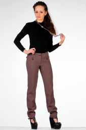 Описание: Очень модные узкие брюки из практичной ткани, украшены молниями, метализированными пуговицами и строчками. Длина по боковому шву - 90 см. Для размеров 48-50 - уровень верха брюк выше на 1,5 см.