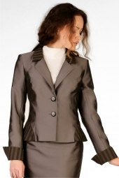 Описание: Жакет из костюмной ткани с кокетливым, игривым силуэтом, на подкладке. Длина по спинке 52 см (без учета воротника)