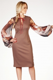 Описание: Платье из джерси с шифоновыми рукавами. Длина по спинке 101 см