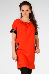Описание: Платье-туника из джерси, свободного силуэта - элегантно своей простотой. Отделка - искусственная кожа. Интересная деталь - кармашки в швах. Рекомендуем носить с легинсами. Длина по спинке - 77 см.