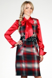 Описание: Сарафан из мягкой костюмной ткани, на подкладке. Длина по спинке 101 см. На модели с блузкой B00954