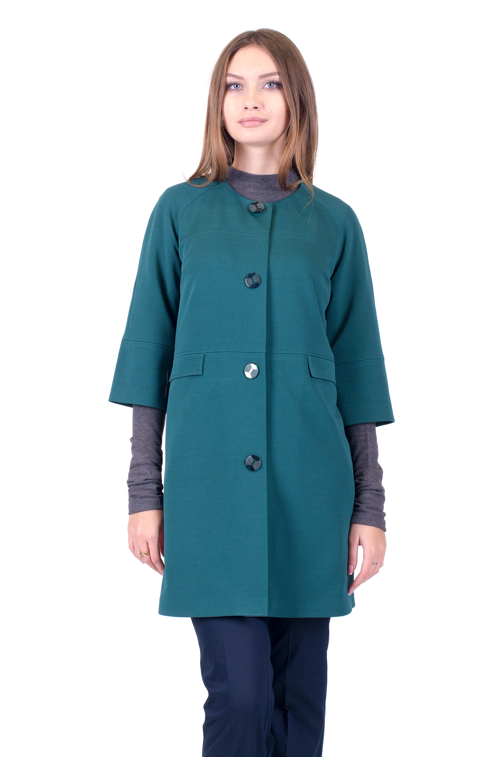 Модное, стильное пальто свободного кроя из трикотажа, на подкладе из вискозы, с рукавом 7/8, с широким манжетом. По швам двойные отстрочки.
