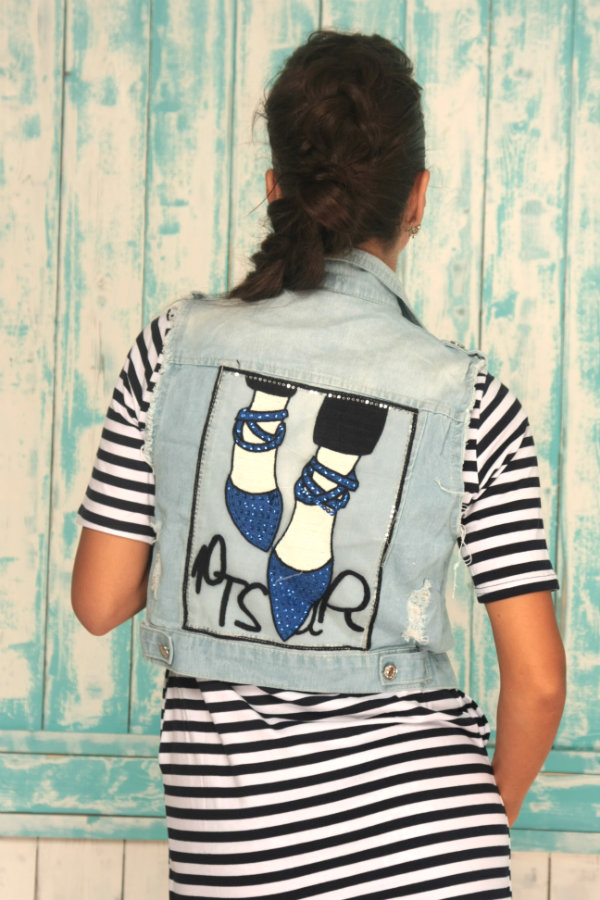 Джинсовая жилетка с нашивкой на спине.