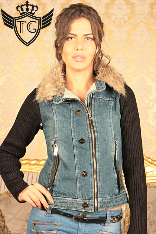 Эксклюзивная, утепленная джинсовая курточка с вязанными рукавами.