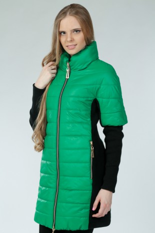 Пальто плащевое комбинированное с "шелтером" имеет приталенный силуэт и отстегивающиеся рукава. Утеплено синтепоном. Ткань верха 100%полиэстер