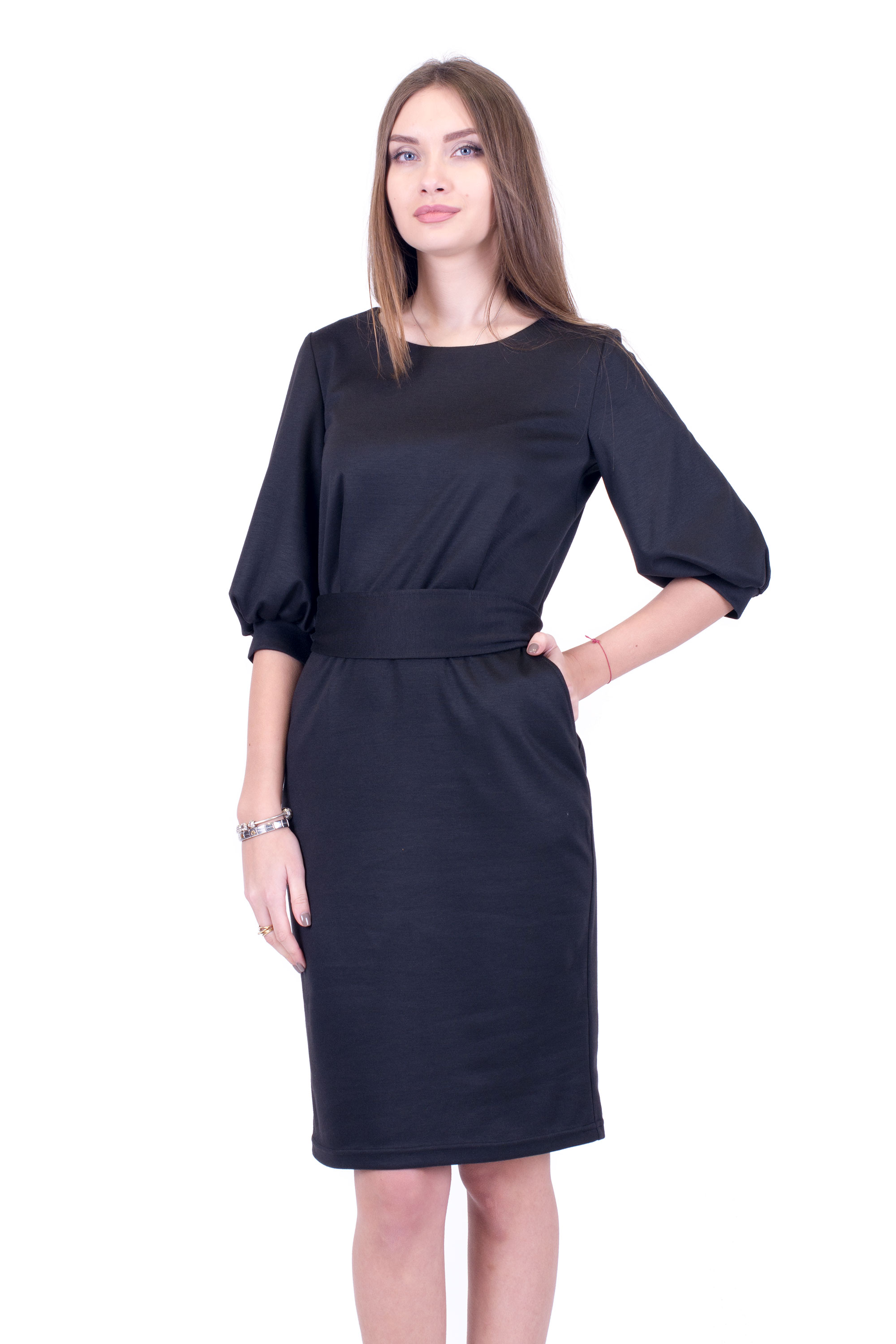 Модное, стильное платье прилегающего силуэта на потайной молнии на спинке, из "французского" трикотажа. Объемный рукав "фонарик" внизу на манжете. Отрезная линия талии с защипами, фиксируется широким поясом.