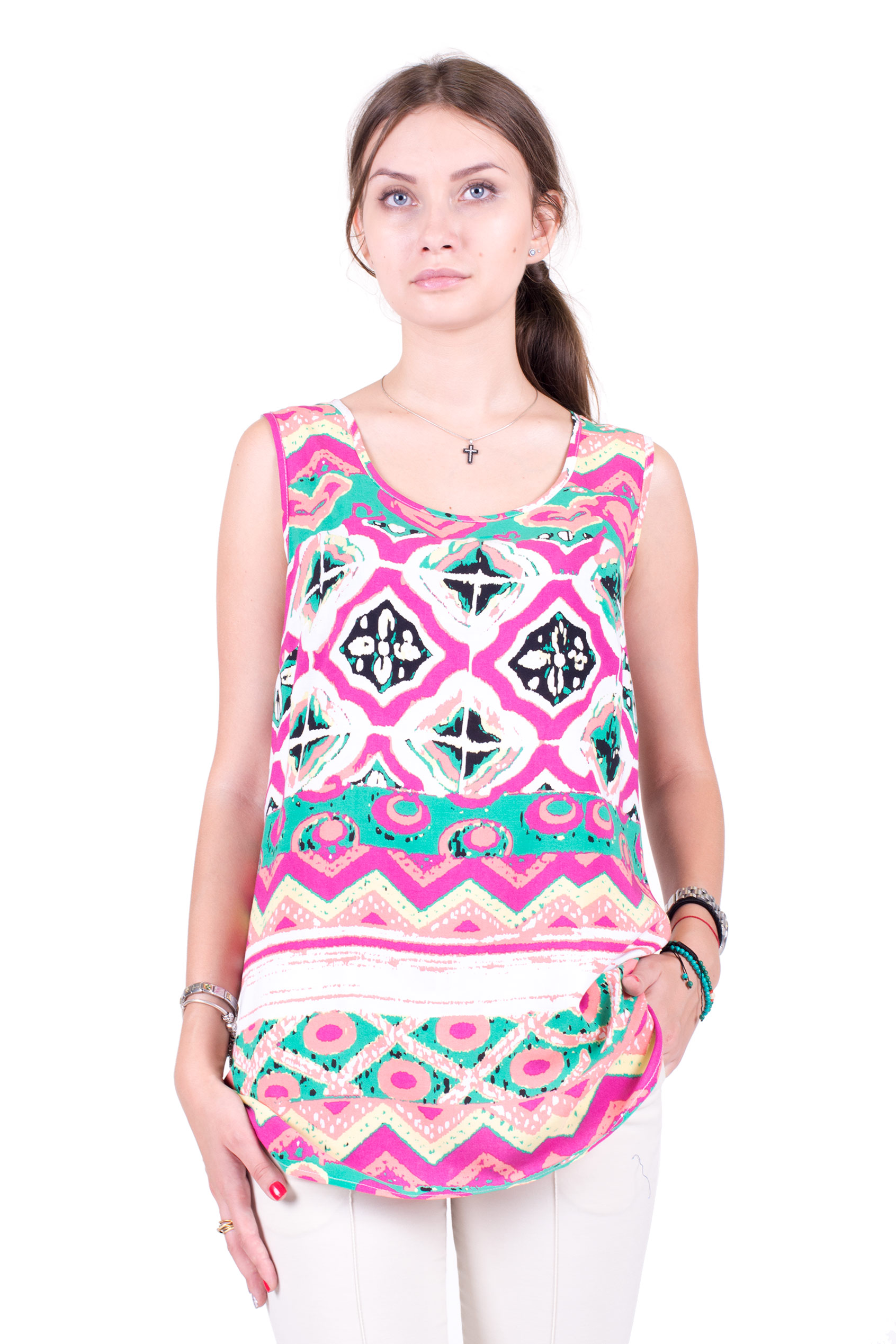 Топ из натуральной ткани, очень приятной к телу. Свободного кроя, с круглой горловиной, широкими бретелями и закругленным низом.