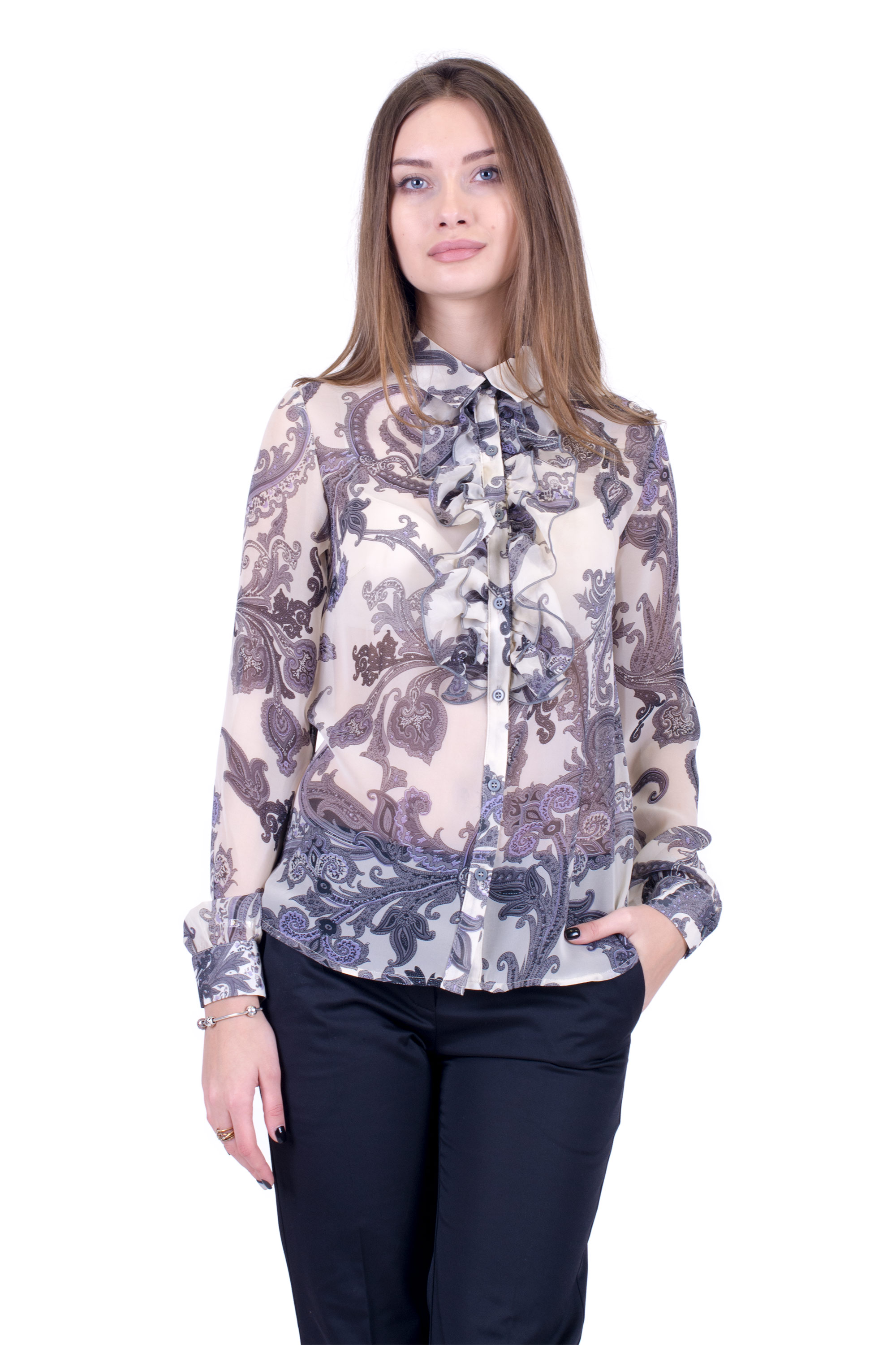 Блуза из шифона свободного прилегания с "рюшей" на планке.