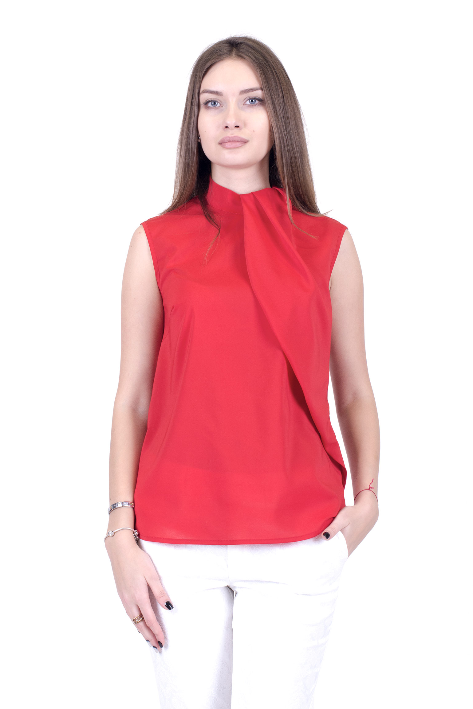 Шифоновая блуза сложного свободного кроя. Спереди украшена защипами. Сзади с застежкой на короткую молнию и пуговицу.