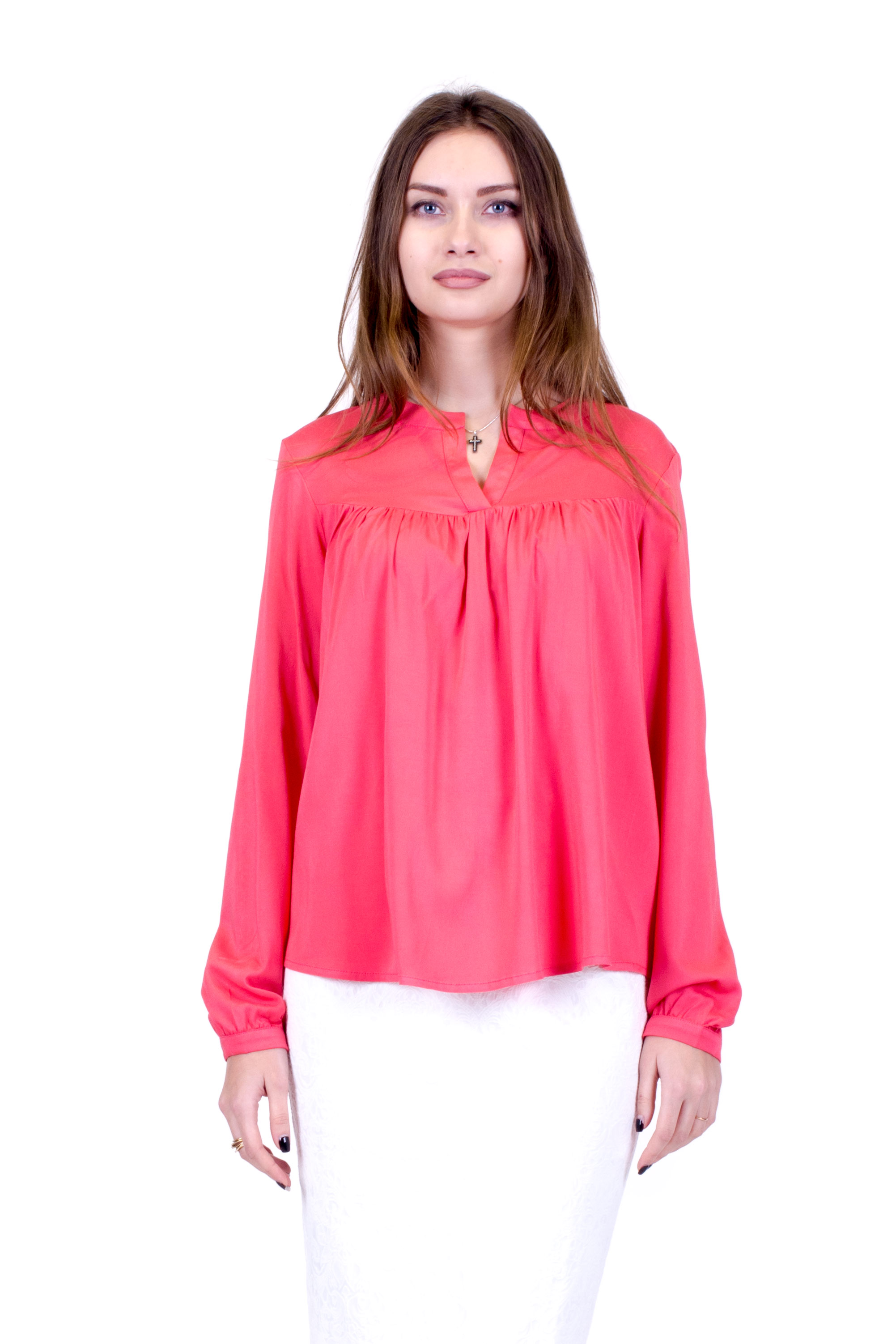 Блуза из натуральной ткани "штапель". Кокетка на планке свободного кроя, переходящая в сборку спереди и сзади.
