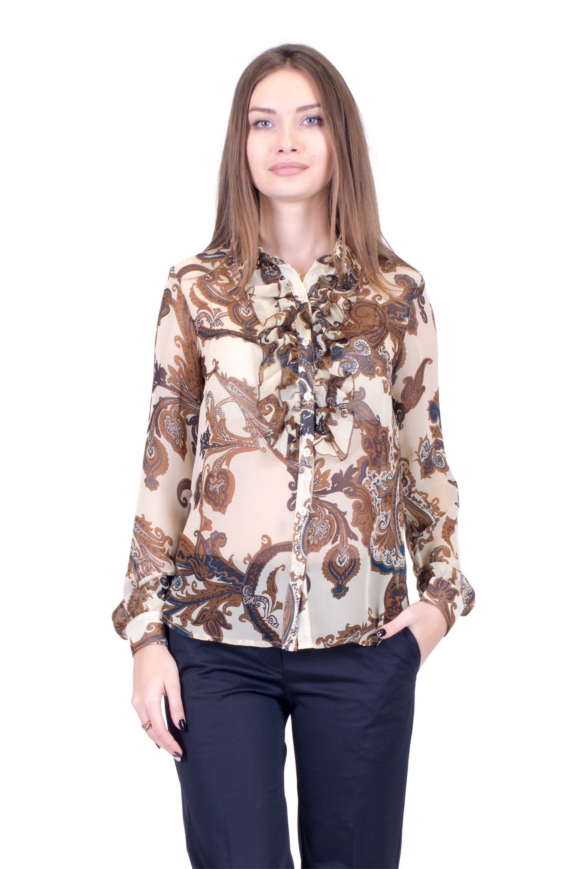 Блуза из шифона свободного прилегания с "рюшей" на планке.
