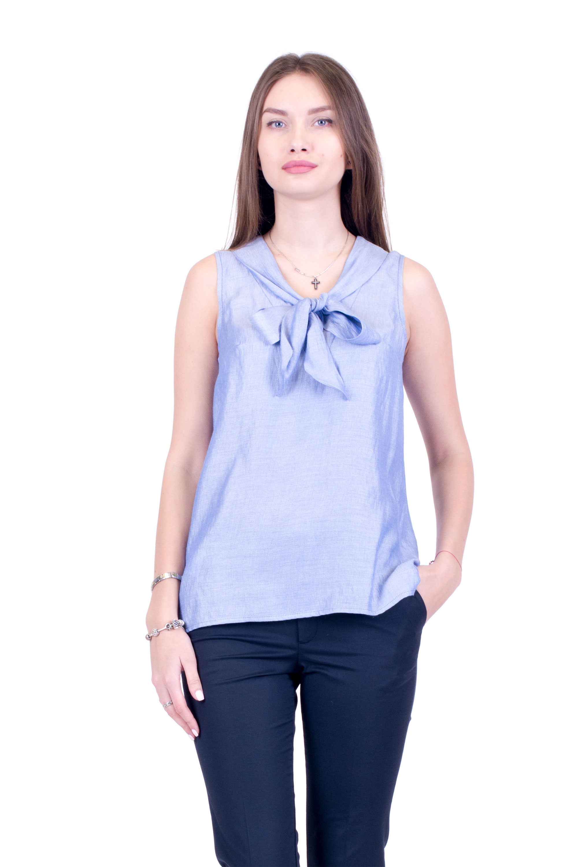 Блуза из натуральной ткани - вискоза, приятная к телу, полуприлегающего силуэта с разрезами по бокам и эффективным бантом по бокам.