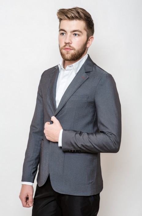Коричнево-угольный хлопковый пиджак по середину бедра. Застежка на две пуговицы, закругленные полы изделия. Накладные карманы. И фишка модели петлица на воротнике. Может, там будет цветок, а может, лишь только чье-то желание чтоб цветок там оказался - решай сам!