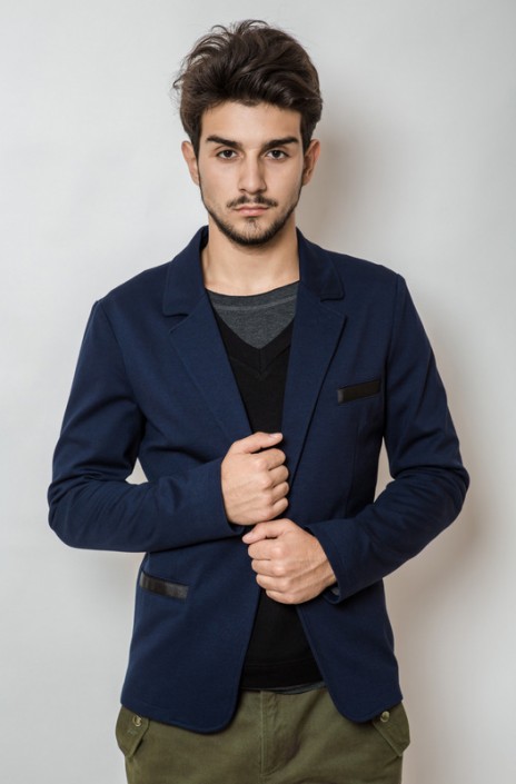 Легкий пиджак насыщенного синего цвета. Удлиненный борт, застежка на одну пуговицу. Два кармана по бокам и один нагрудный мы выделили контрастной черной тканью. Прекрасный вариант как для работы, так и для похода с друзьями в клуб. Позволительно носить даже с футболками несмотря на классическую направленность.