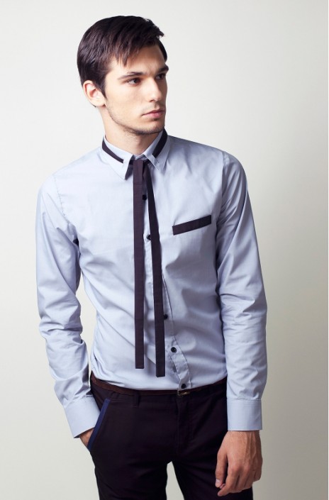 С этой рубашкой можно забыть про необходимость носить галстук. Находчивое решение TOS -пустить по воротнику завязку контрастного цвета. Длина, которой позволяет соблюсти все каноны официоза. Пусти стиль в свой офис вместе с TOS!