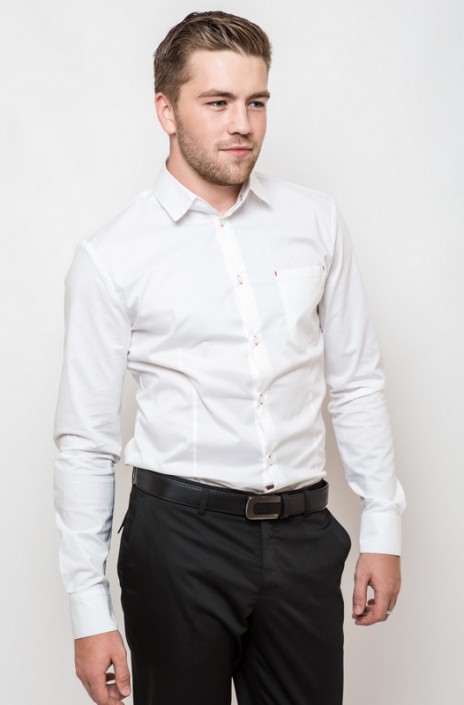 Классная классика, это не тавтологизм. Это приталенная рубашка из хлопка насыщенного шоколадного цвета. Декоративная отстрочка петелек и кармана в оранжевом контрасте. Модель, подчеркивающая достоинства фигуры и придающая уверенность.