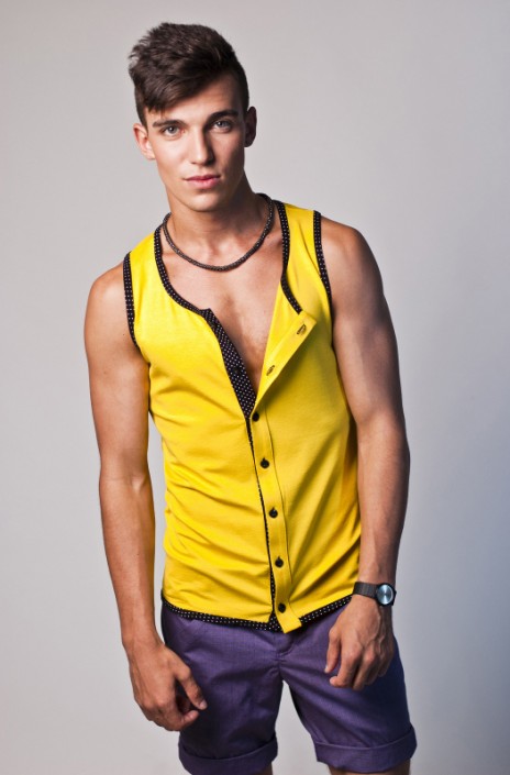 Удивительная майка. В эту модель мы вложили максимальные удобства, которые так необходимы в жаркий летний день. Приятная телу ткань и заманчивая застежка на пуговицы. Для того,чтобы у тебя всегда было хорошее настроение, мы окантовали горловину, планку и рукава веселым горошком.